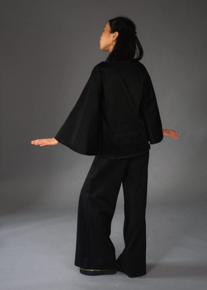 Bluza cu maneci larci ,umar cazut , lugimea bluzei este de 65 cm