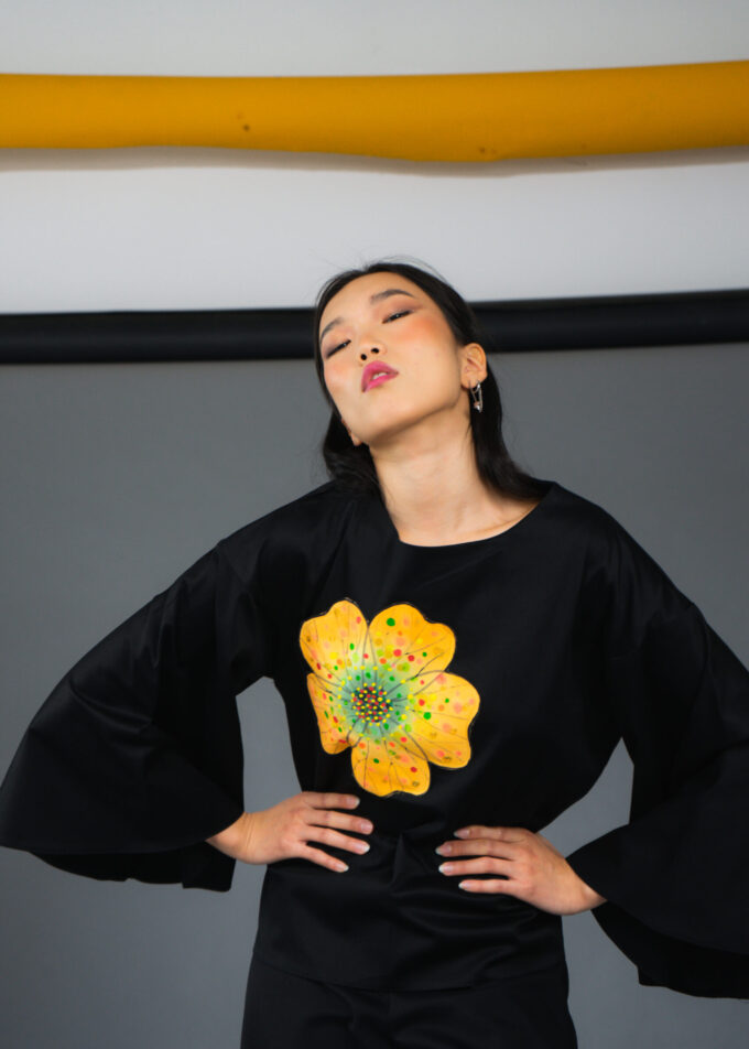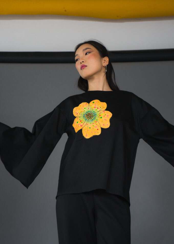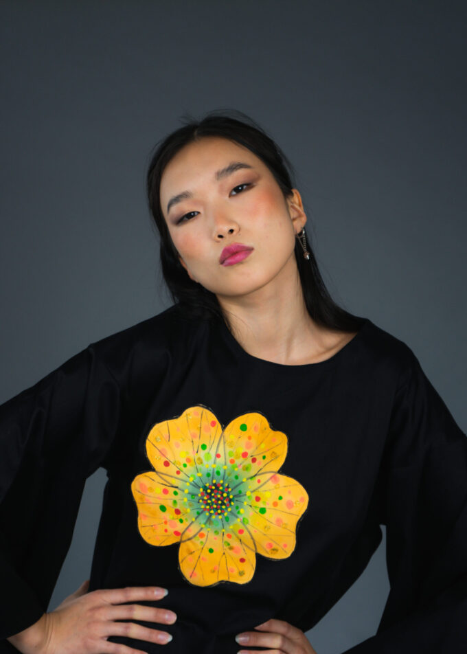 Bluza Brize cu Floare Galbena este alegerea perfectă pentru vara aceasta. Aceasta bluză albastră, confecționată din bumbac de calitate superioară, este pictată manual cu delicatețe și atenție la detalii, prezentând un design unic cu flori de maci. Materialele naturale utilizate asigură o senzație lejeră și confortabilă pe tot parcursul zilei, iar croiala comodă se potrivește oricărei siluete.Bluza Brize cu Floare Galbena este ideală pentru o zi relaxantă la plajă sau pentru o ieșire în oraș.