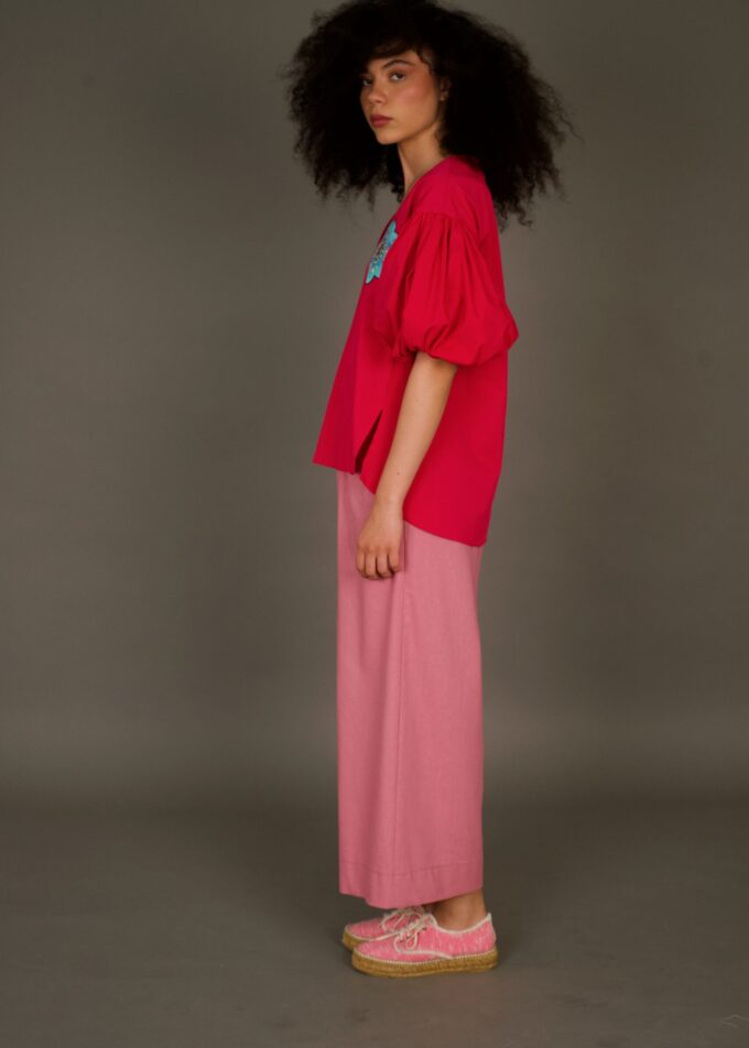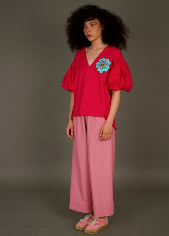 Bluza Flore Turcoaz este alegerea perfectă pentru vara aceasta. Aceasta bluză , confecționată din bumbac de calitate superioară, este pictată manual cu delicatețe și atenție la detalii, prezentând un design unic cu flori de maci. Materialele naturale utilizate asigură o senzație lejeră și confortabilă pe tot parcursul zilei, iar croiala comodă se potrivește oricărei siluete.Bluza Flore Turcoazi este ideală pentru o zi relaxantă la plajă sau pentru o ieșire în oraș.