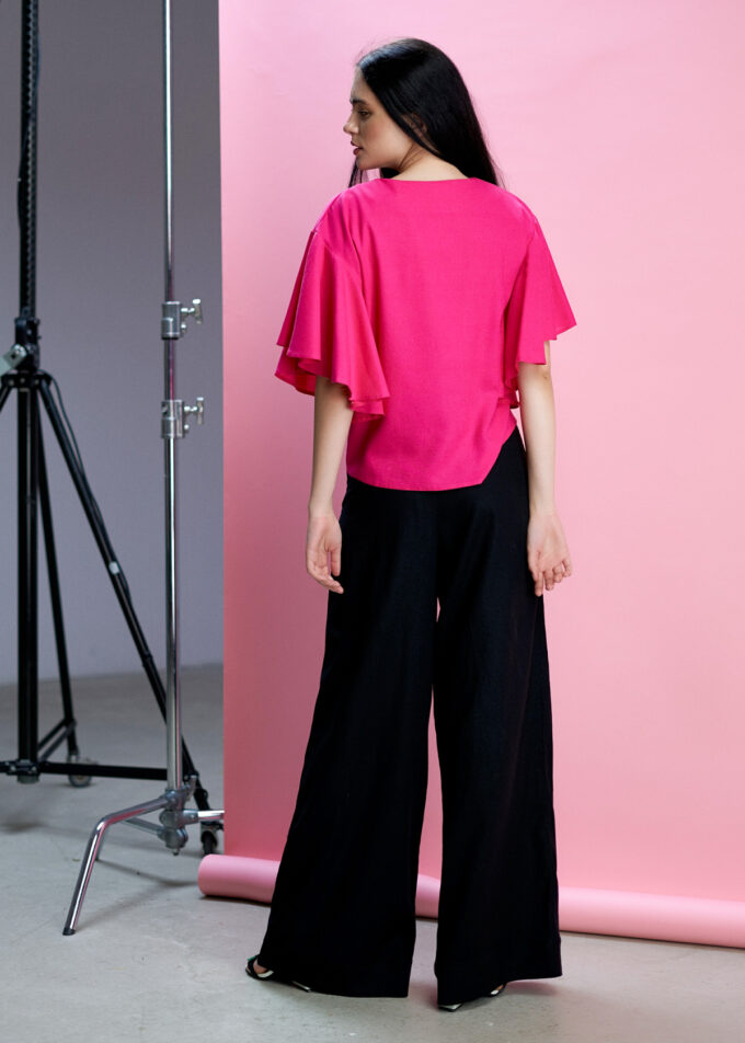 Bluza Rux are o manecă cu volan, care îi conferă un aer romantic și feminin. În plus, designul lejer și comod al acestei bluze o face potrivită pentru orice ocazie, de la plimbări în parc până la întâlniri cu prietenii sau evenimente speciale.