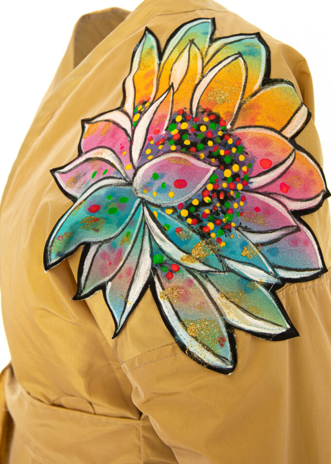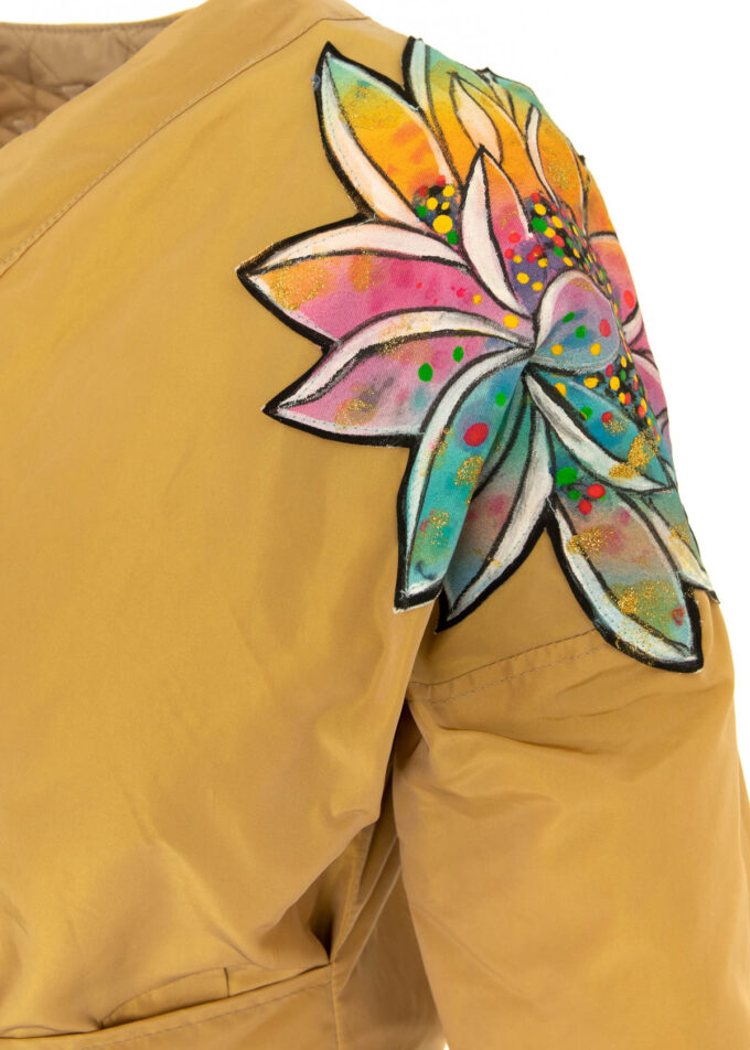 Aplicatie floare pe spatele jachetei