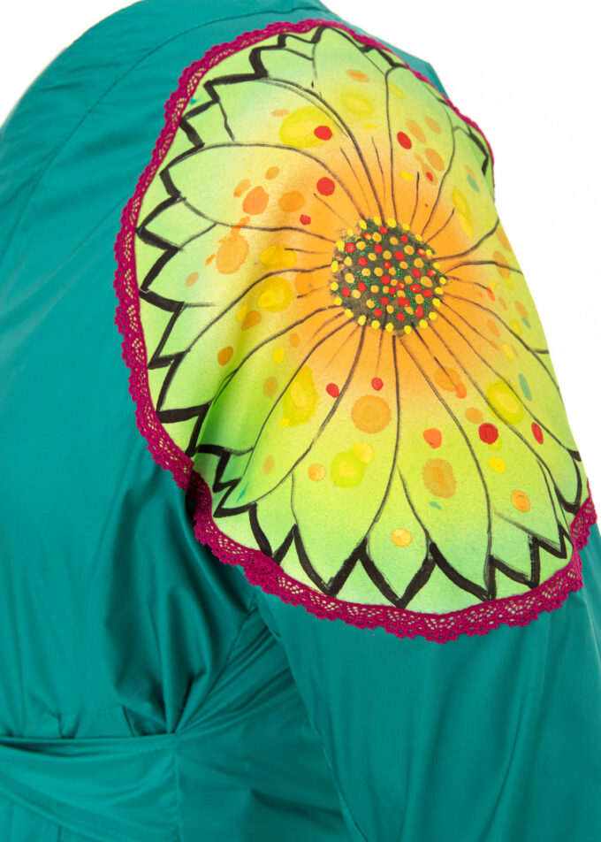 Unul dintre cele mai interesante aspecte ale acestei jachete este pictura de pe spate. Realizată cu atenție la detalii de către artiști talentați, această pictură conferă jachetei un stil aparte și o face să iasă în evidență în mulțime.