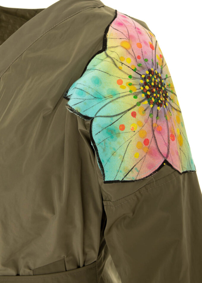 Aplicatie floare pe spatele jachetei