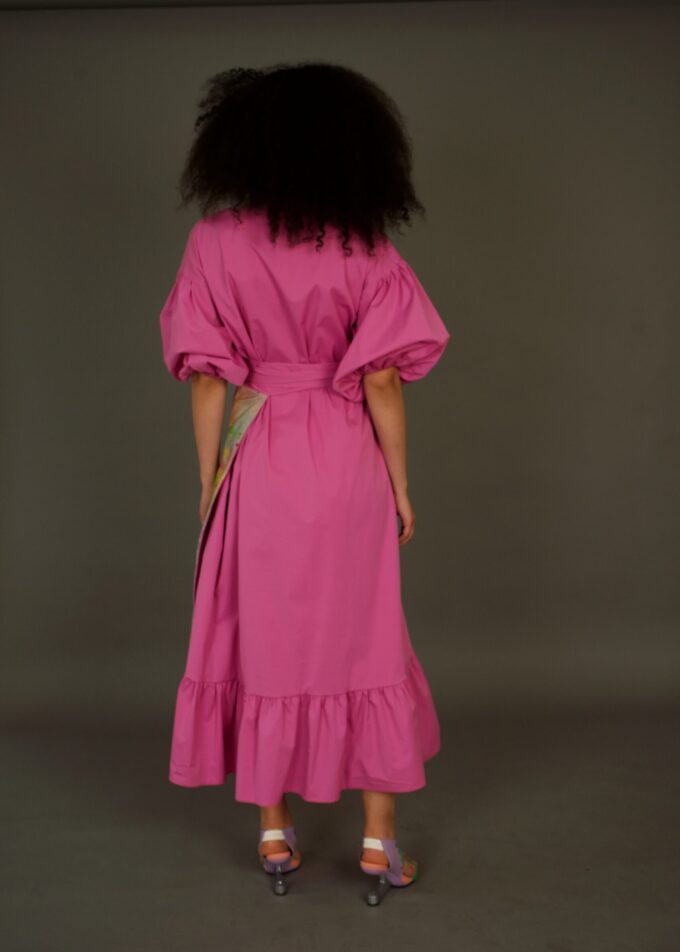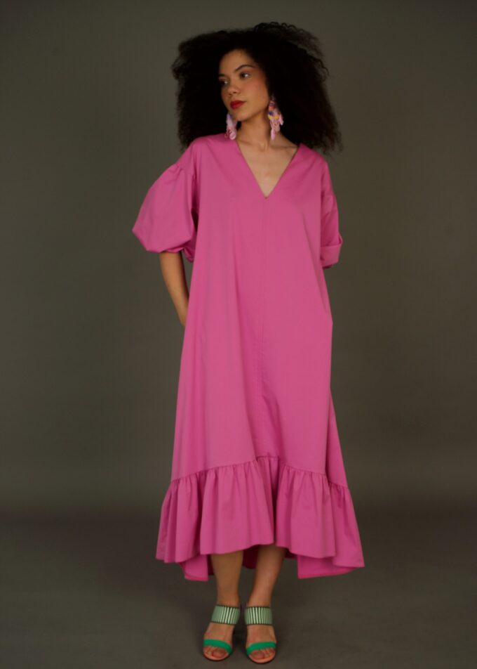 Rochia Plain Roz are un design unic, ce include volane și un sorț în partea de jos, precum și o manecă bufantă pentru un look sofisticat și elegant. Aceste detalii adaugă un plus de stil și personalitate ținutei tale.