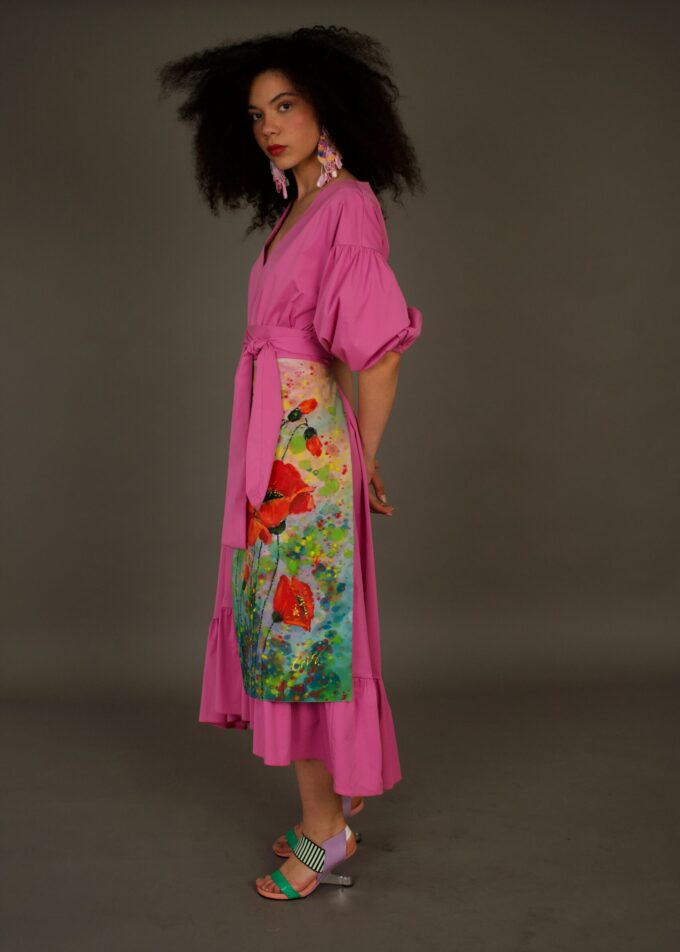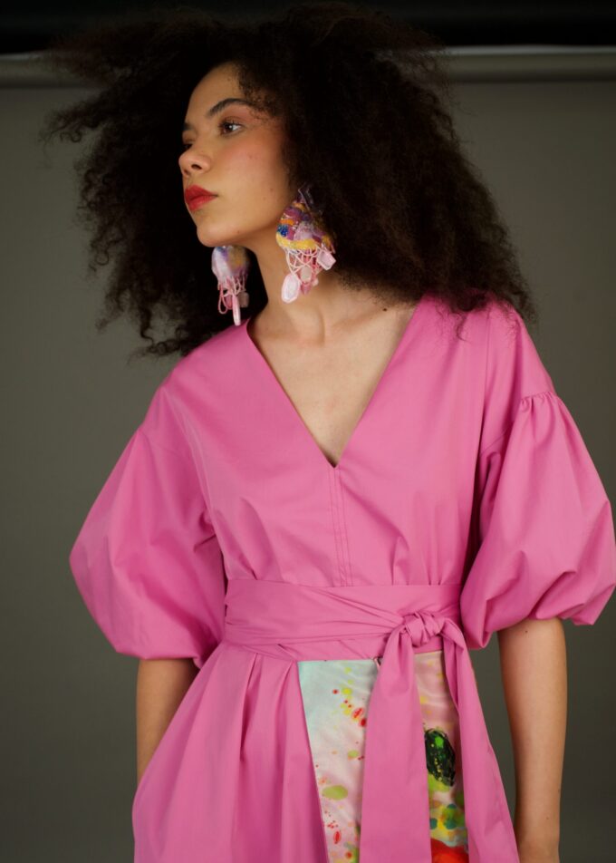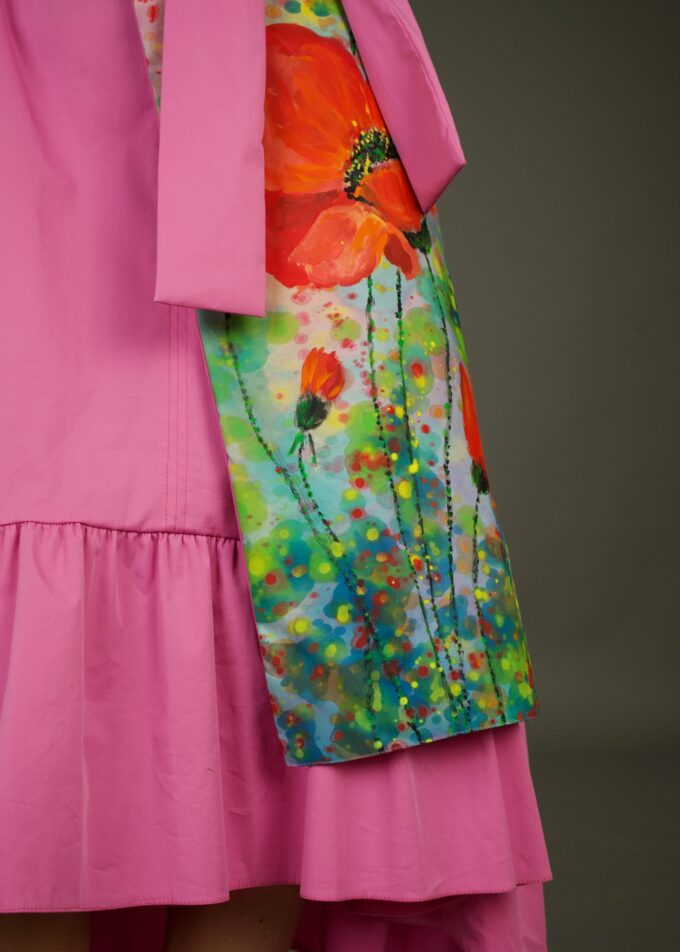 Rochia Plain Roz este un produs de înaltă calitate, realizat din bumbac cu vascoza. Această rochie impresionantă are un design unic, care îmbină armonios elemente de artă și modă. Cu un volan frumos și un sorț adăugat, această rochie te va face să arăți și să te simți extraordinar.