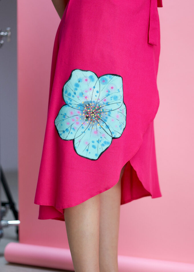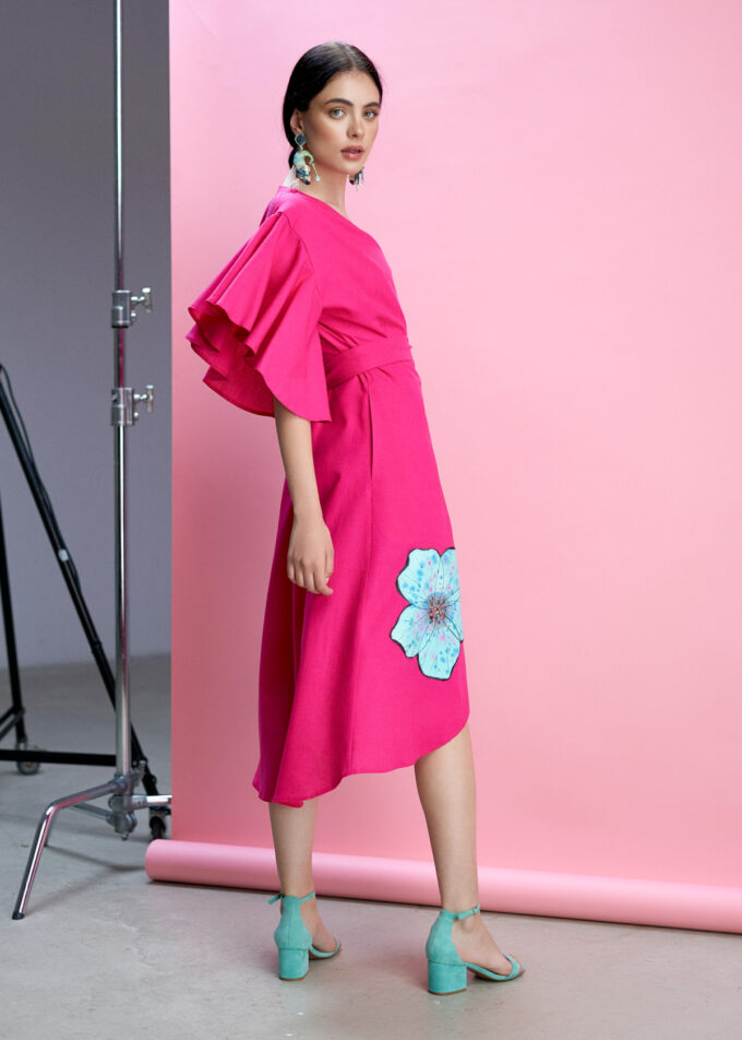Rochia Rux perfectă pentru a adăuga un strop de culoare în garderoba ta. Această rochia este realizată din materiale naturale de înaltă calitate și este pictată manual, ceea ce îi conferă un aspect unic și deosebit .