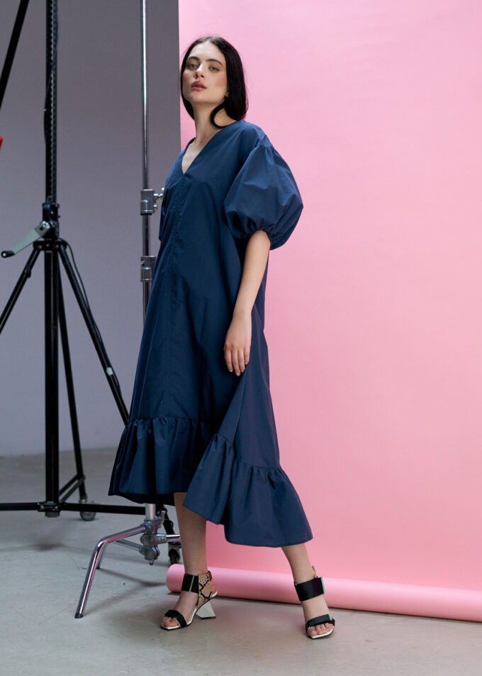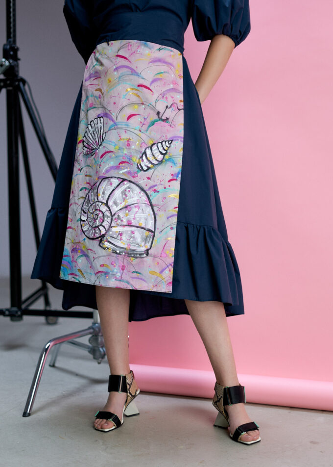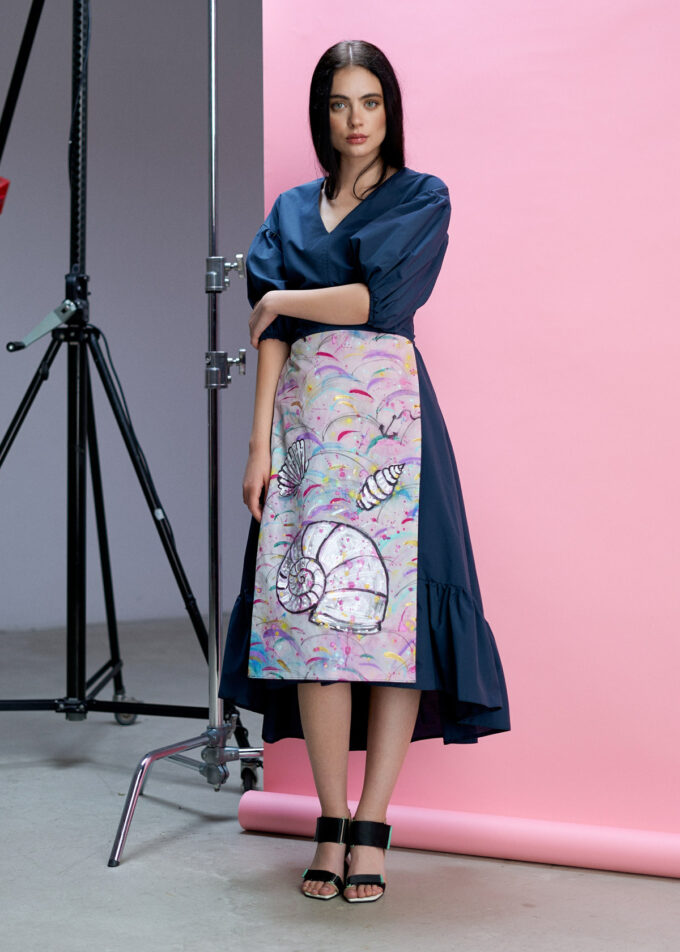 Rochia Sea este un produs de înaltă calitate, realizat din bumbac 100%. Această rochie impresionantă are un design unic, care îmbină armonios elemente de artă și modă. Cu un volan frumos și un sorț adăugat, această rochie te va face să arăți și să te simți extraordinar.